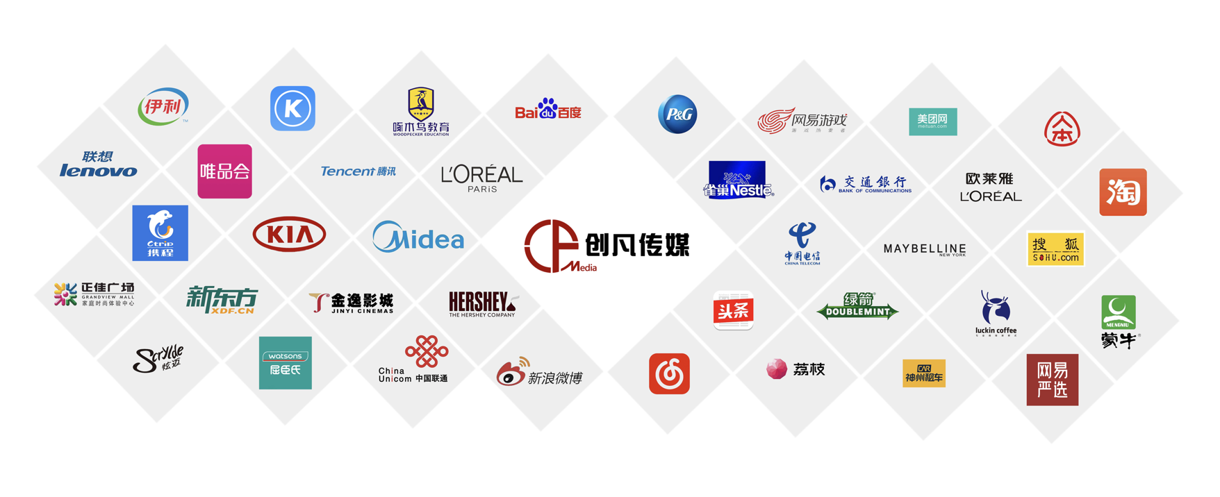 公司以“做品牌年輕化的好幫手”為使命,憑借敏銳的創(chuàng)意洞察、卓越的營(yíng)銷策劃能力、豐富的活動(dòng)經(jīng)驗(yàn)和全方位的媒體資源,為企業(yè)提供高效、精準(zhǔn)的一站式營(yíng)銷推廣服務(wù)。已成為寶潔、騰訊、京東、中國聯(lián)通、字節(jié)跳動(dòng)等世界500強(qiáng)品牌庫內(nèi)供應(yīng)商。